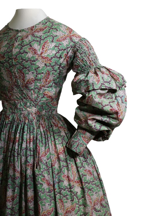 De 1820 à 1840 le romantisme est à son apogée. C’est le temps des robes corsetées, des jupes en forme de cloche, des manches dites jambe de mouton ou gigot et des chapeaux immenses recouverts de plumes, de rubans, ou de fleurs. Sacs, éventails et châle en cachemire qui parfois remplacent les manteaux témoignent de l’extravagance de l’époque. Avec un peu de chance vous croiserez Honoré de Balzac, Jules Barbey d’Aurevilly et Guy de Maupassant qui ont adopté le chic anglais et se promènent dans les couloirs de l’exposition en redingote, gilet court et bottes de cuir.