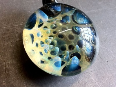 « Je tente de dépoussiérer les techniques vénitiennes » explique-t-il. « Je n’utilise pas de feuille d’or, mais, je vaporise l’or et l’argent dans du verre dichroïque. »
